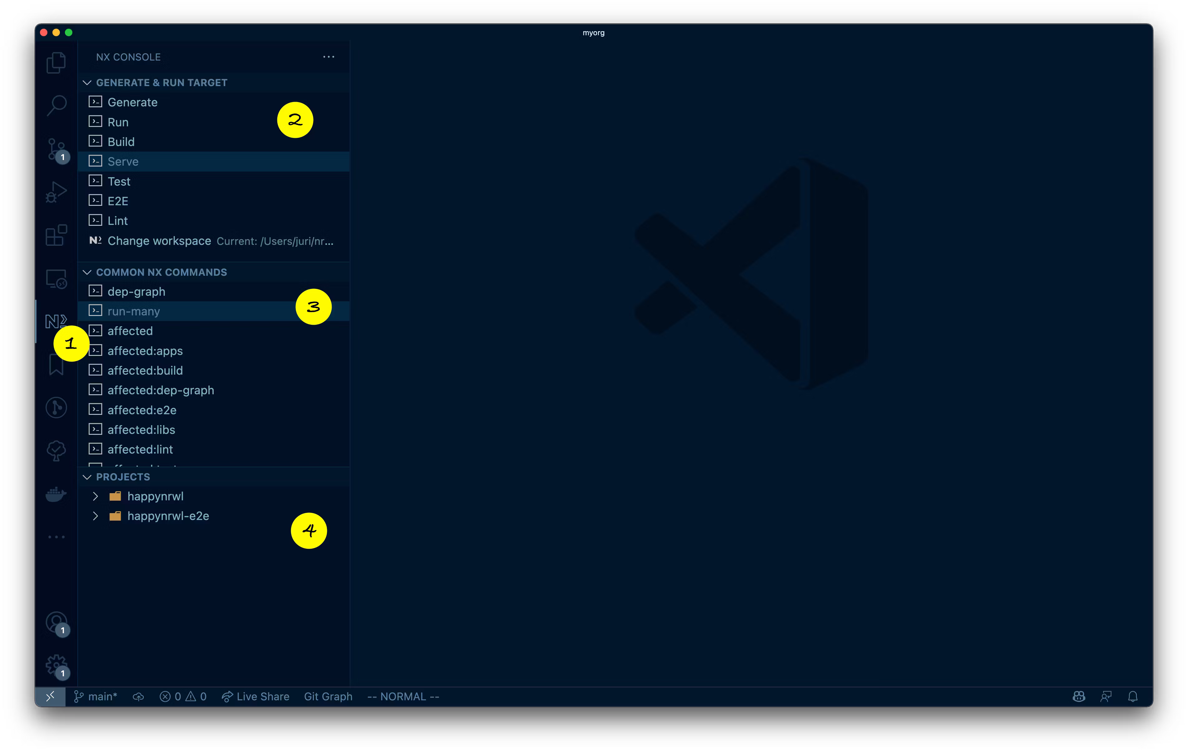 However, the absolute easiest way to explore the potential and even use Nx if you are not the "terminal type of person" is Nx Console! I'll go a bit deeper into that in a later section.