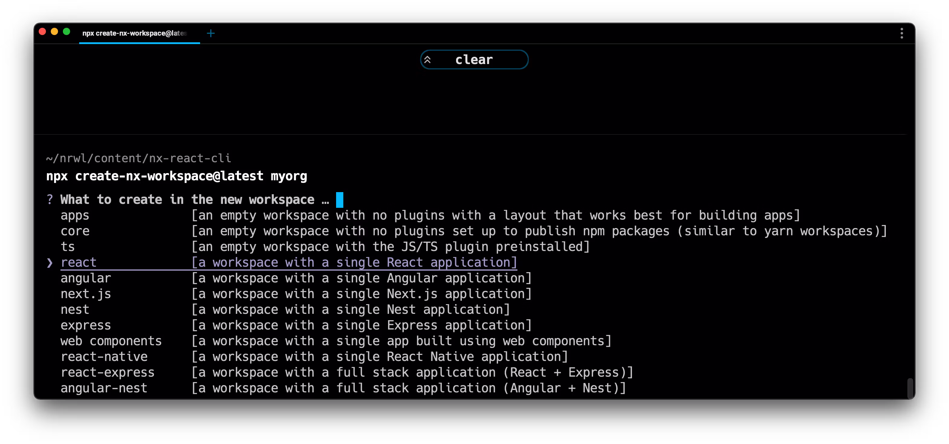 You should end up with a new Nx workspace and our happynrwl React app in the apps/ folder.